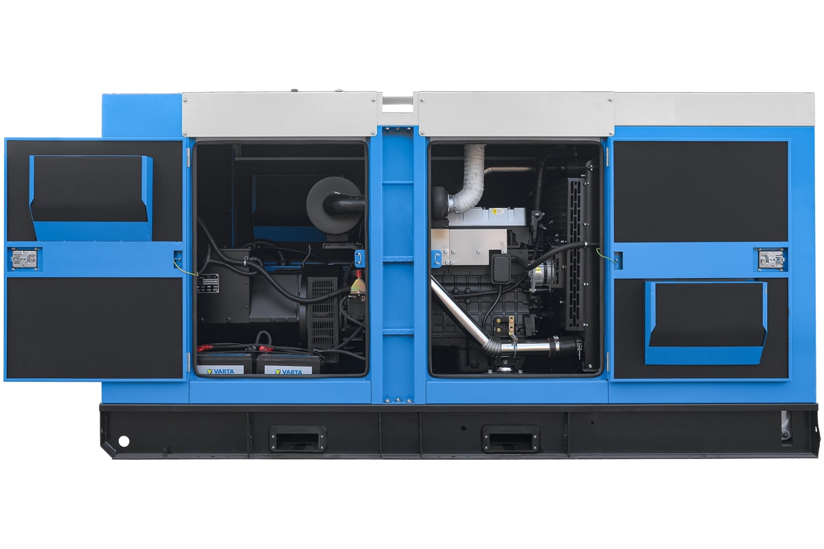 Дизель генераторную установку в шумопоглощающем кожухе можно эксплуатировать как в помещении, так и на улице при температуре окружающей среды от -25°С до +40°С. Кожух обеспечивает необходимую теплоизоляцию и снижает уровень шума на 10-12 дБ.